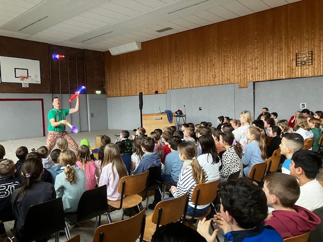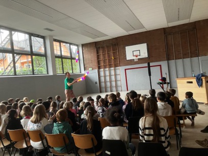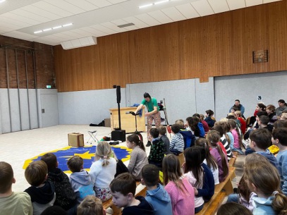 Der Tag begann für unsere Schülerinnen und Schüler mit einem Wortgottesdienst in der Turnhalle, der von Sandra Hoffmann und den Kindern der Klasse 4b gestaltet wurde.