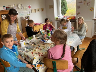 In der AG "Schulhausgestaltung" mit Frau Dreßler und Frau Fecher machen die Kinder tolle Sachen zur Verschönerung des Schulhauses