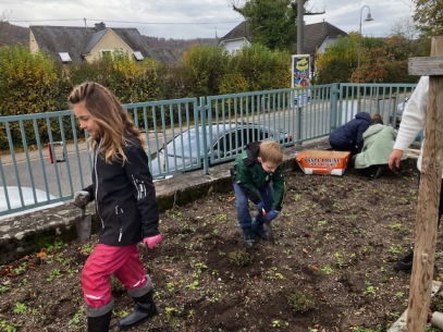 Die Kinder Garten-AG bei der Arbei mit Frau Neitzel