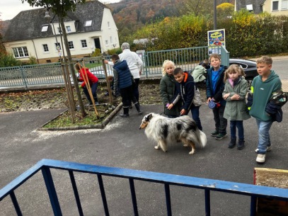 Die Kinder der "Hunde AG" mit "Ihrem" Hund Leo