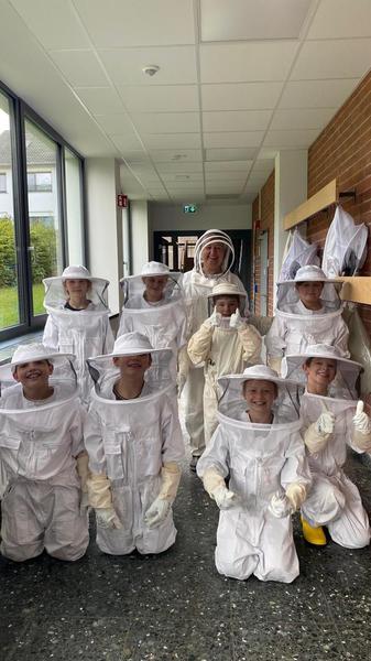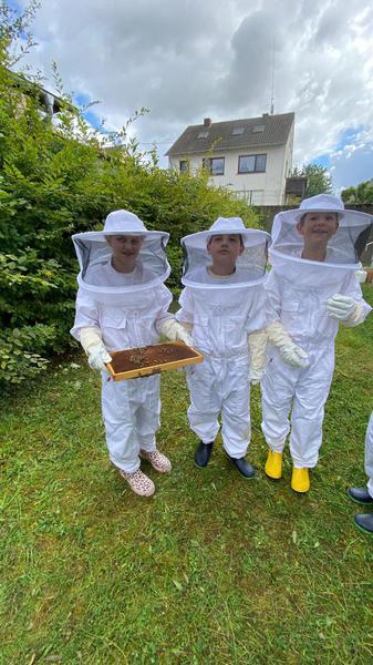 Die Kinder der Klasse 4a beim Bienenprojekt